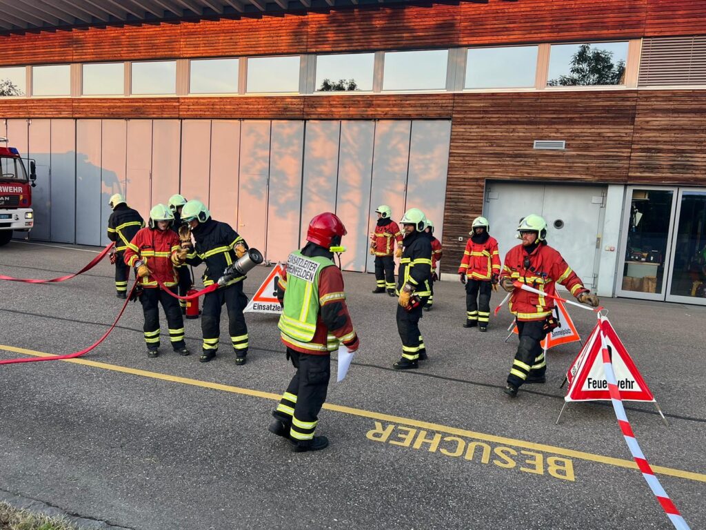 Die Rettungen wurden souverän ausgeführt, auch die Brandbekämpfung ging schnell und geordnet über die Bühne. Nach dieser Einsatzübung ging es zum Werkhof, dort durfte bei einem weiteren Szenario der dreifache Brandschutz und Löschangriff aufgebaut werden. Nachdem alles Material bereit lag, kam es zu einem Ernsteinsatz. Da die Neueingeteilten mit dem Tanklöschfahrzeug (TLF) am arbeiten waren, musste das ausgepackte Material so schnell wie möglich retabliert werden. So durften die Neueingeteilten zu Ihrem ersten kleinen Brand mit dem TLF ausrücken. Der Brand war rasch unter Kontrolle und die Mannschaft wurde wieder ins Magazin gebracht.
