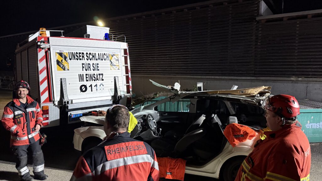 Im Werkhof standen zwei Fahrzeuge bereit. Aufgeteilt in zwei Gruppen konnte jeweils ein Szenario entworfen werden, das es abzuarbeiten galt. Der Kreativität waren dabei keine Grenzen gesetzt. Es wurde nichts geschenkt — sei es durch zugeparkte Unfallautos oder solche, denen ein Rad fehlte, sodass sie nicht zur einfacheren Rettung verschoben werden konnten.