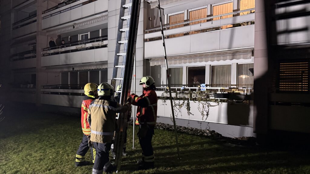 Die eine Gruppe durfte die Schiebeleiter mit Stützen für eine Rettung via Balkon stellen. Während die andere hälfte die mechanische Leiter in Aktion nehmen konnten.