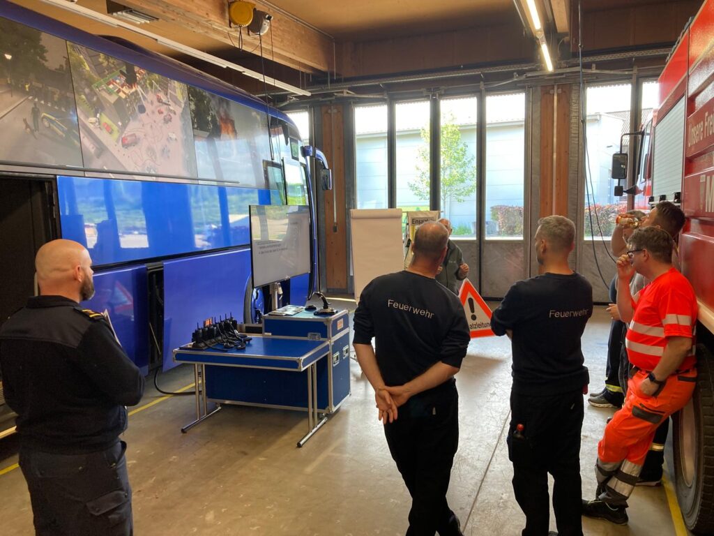 Der Bus bietet an verschiedenen Stationen die Möglichkeit, die Fahrzeuge und die Mannschaft zu manövrieren sowie die Einsatztaktik zu üben.