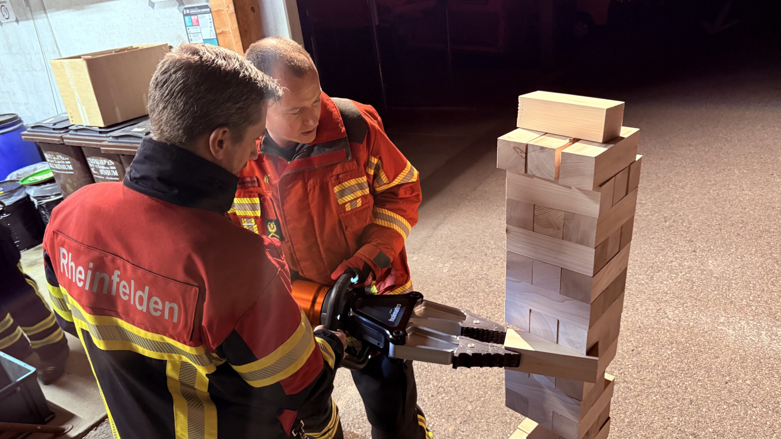 Am Posten der Technischen Hilfeleistung, geführt von Markus, konnten die Kaderangehörigen ihr Geschick im Umgang mit Spreizer unter Beweis stellen. Die Gruppe an diesem Posten wurde nochmals geteilt und es wurde der Teamgeist gestärkt und gleichzeitig die Präzision im Umgang mit dem Spreizer gefördert. Es wurde an diesem Posten Jenga gespielt, fasst so, wie man es von zu Hause aus kennt, jedoch in einer grösseren Ausführung.