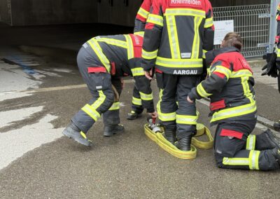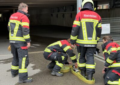 Der erste Schritt in die Feuerwehrkarriere beginnt nach der Rekrutierung im November, dem Einkleiden im Januar und der ersten gemeinsamen Übung im Februar mit dem Neueingeteiltenkurs, der am Freitag und Samstag stattfand und dieses Jahr in Stein durchgeführt wurde. Am Freitag standen für einen Teil der Rheinfelder Klasse die Materialkenntnisse, die Sicherheit und die technische Hilfeleistung im Zentrum. Auch der Umgang mit Schiebeleitern, Leitern mit Stützen sowie das Sichern von Personen und Lasten waren Teil des intensiven Programms. Die Personenrettung über Leitern, die ersten Massnahmen im Rettungsdienst, der Einsatz der Wärmebildkamera und das richtige Lüften ergänzten den Tag. Beim Ausbildungsblock der Knoten war in einigen Gesichtern das eine oder andere Fragezeichen zu erkennen, was in dieser Phase völlig normal ist.