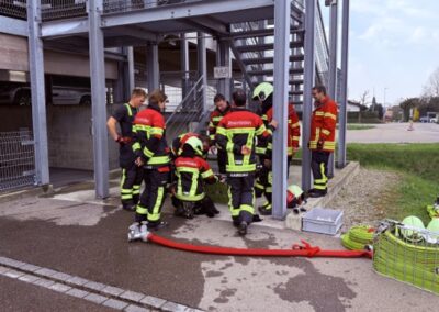 Der Samstag begann für alle Klassen mit einem Theorieteil, bevor der gesamte Tag ganz im Zeichen der Grundlagen der Brandbekämpfung und des Leitungsbaus stand. Die Teilnehmenden vertieften das Schlauchmanagement, arbeiteten mit verschiedenen Verbrauchern und bereiteten sich auf das grosse Finale vor – den Einsatz im Klassenverbund. Beim Besuch am Samstag waren die Strapazen der beiden intensiven Tage deutlich zu sehen, doch trotz Müdigkeit blieben alle engagiert und interessiert bei der Sache. Auch dieser Tag neigte sich dem Ende zu, doch der krönende Abschluss sollte erst noch folgen.