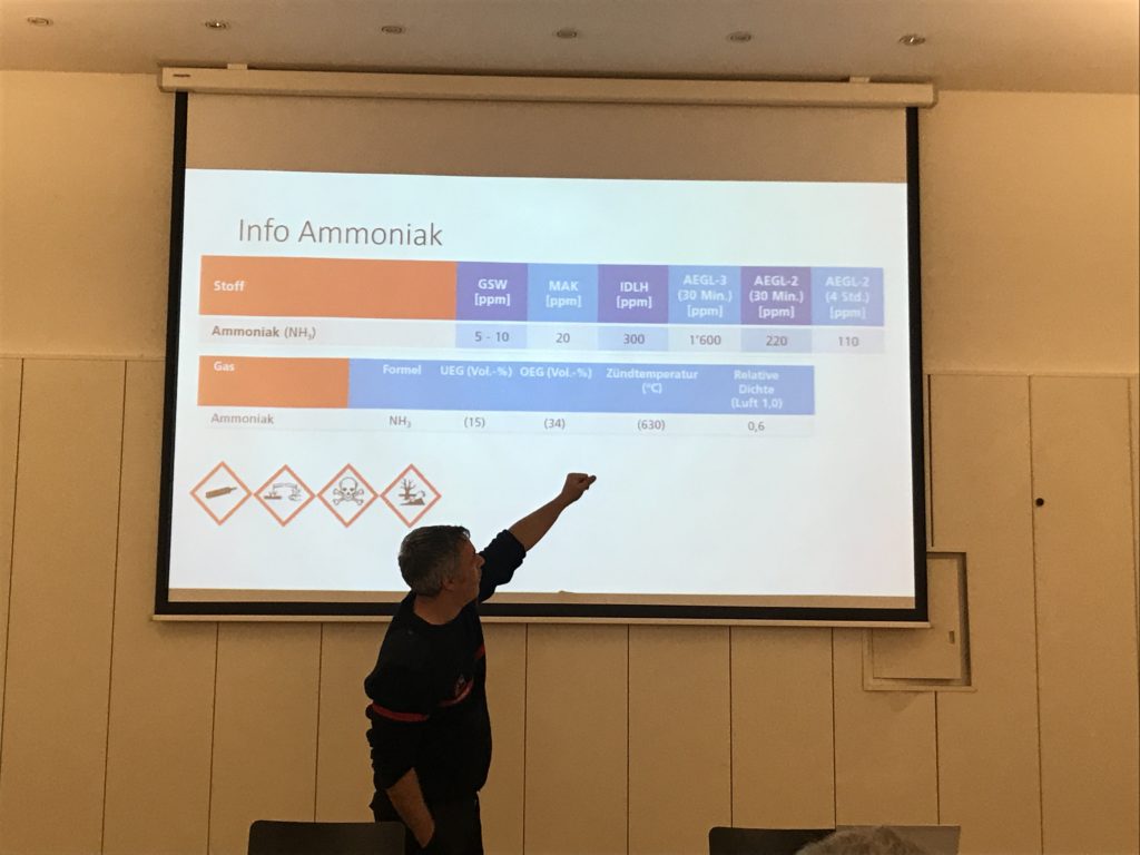 Das letzte Aufgebot für die Offiziersprobe sah zwei Punkte vor, in einem ersten Teil ging es um die Aufarbeitung eines Einsatz Chemiewehr auf Ortsfeuerwehrbasis. Geleitet wurde dieser Erfahrungsaustausch von unserem Chemiefachberater. Während einer Stunde wurde an Hand eines effektiven Einsatzes aufgezeigt, was es zu beachten gibt, welchen Einfluss das Wetter hat, welche Schwellwerte der ausgetretene Stoff hat. Eine durchaus spannende Stunde, bei der man sehr viel profitieren konnte, auch dann wenn man an diesem Einsatz nicht dabei war. Der zweite Teil, befasste sich mit der Besprechung des vergangenen Jahres beim gemütlichen Zusammensein an der Feuerschale.
